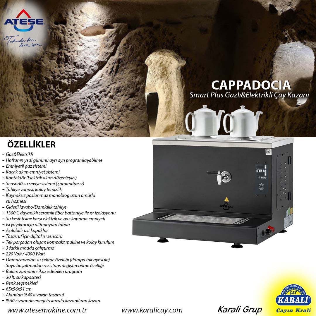 SMART PLUS KONTROL Programlanan saatte; makinenin Elektriğini ve Gazını açar ve kapatır. 220 volt/ monofaze elektrik ile çalışır. Suyu otomatik alır. Sıcaklık ayarını girilen değere getirir ve sabitler. Gazlı ve Elektrikli modellerde tek tuş ile enerji geçişi sağlanır.