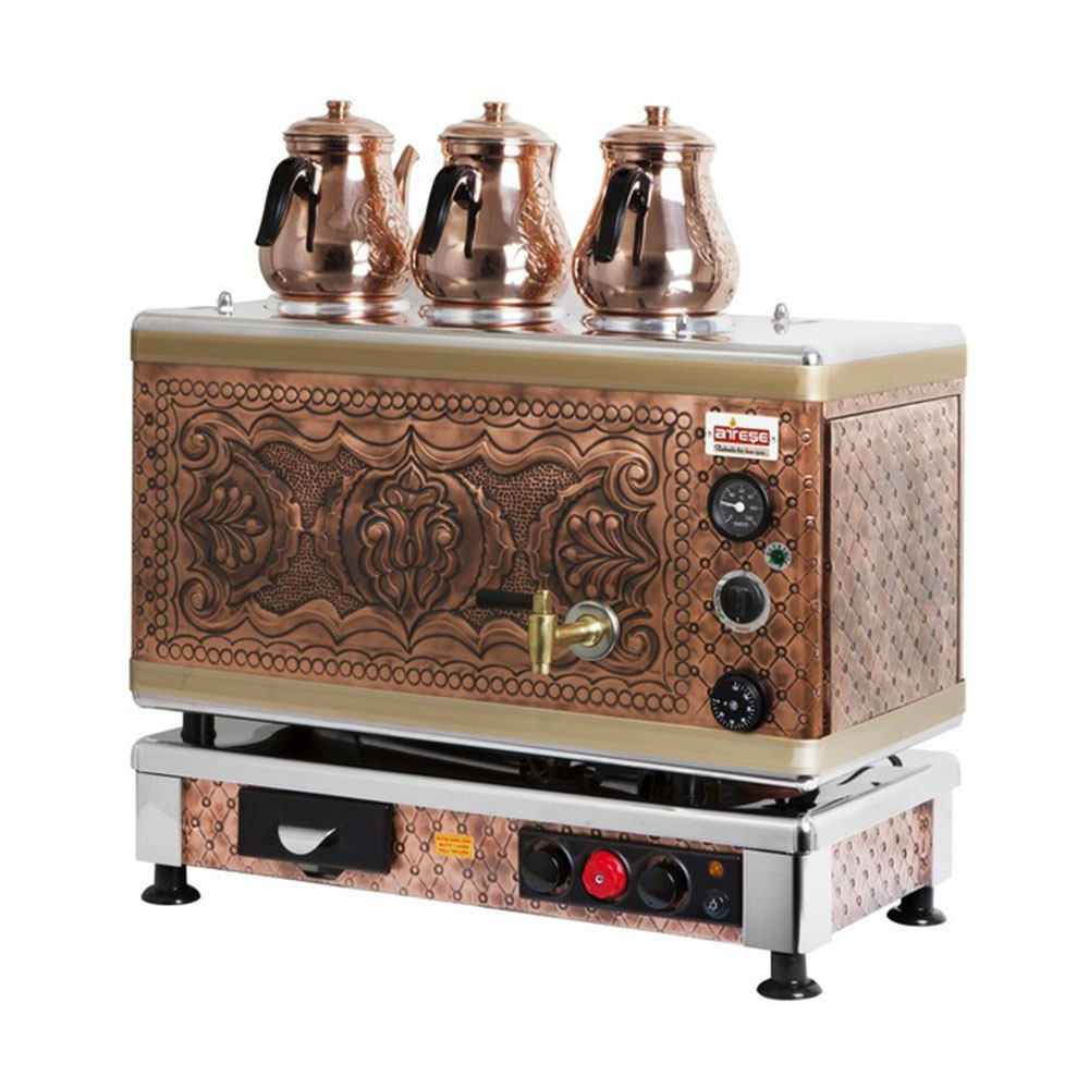 Zaman: Çay makinelerimiz programlanabilir özelliği ile sabahları otomatik olarak suyu alır, gazı, elektriği açar, suyu ısıtır ve çay demlemeye hazır eder. Bu sayede işletmeye zaman tasarrufu sağlar.