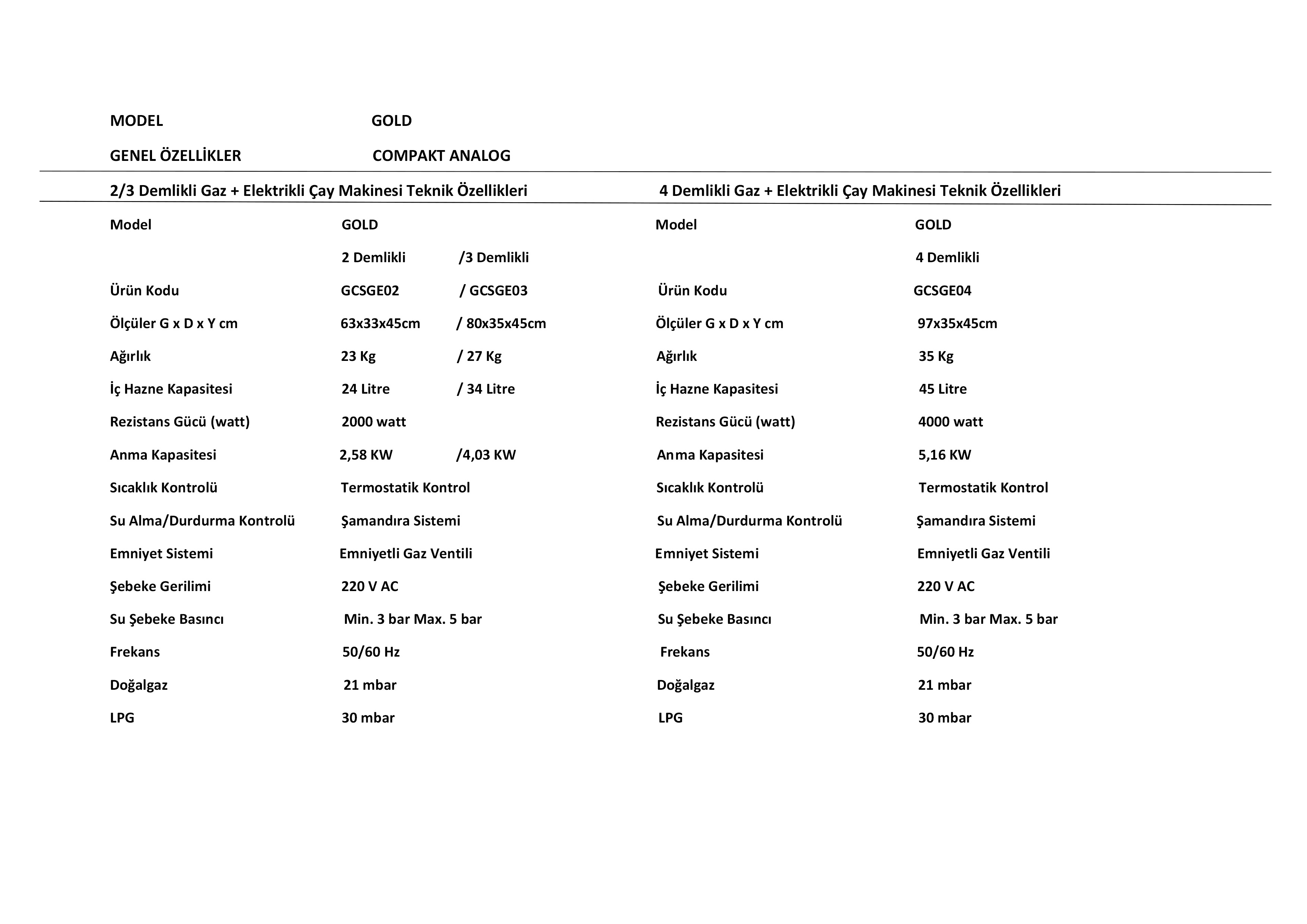 Gold Compact Analog Gaz&Elektrikli Statik